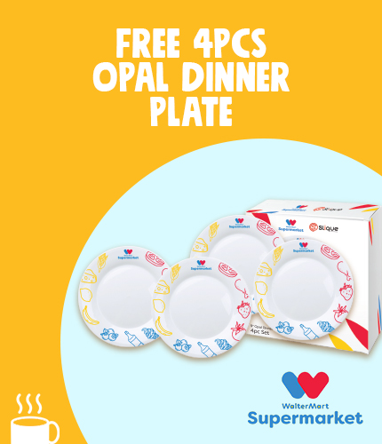 Get FREE 4pcs 9” Opal Dinner Plate with a minimum P4,500 single-receipt spend with 2,000 worth of participating items at WalterMart Supermarket.