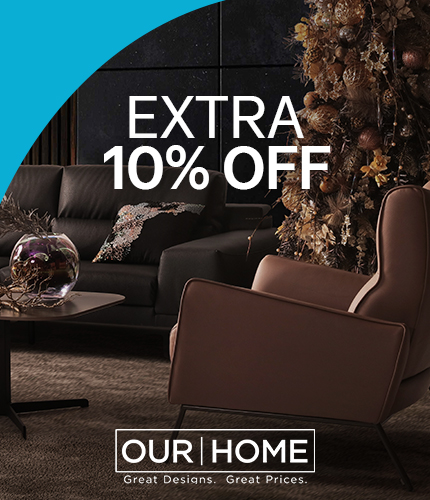 Get EXTRA 10% OFF on all regular-priced and select sale furniture during the Weekend Sale at OUR HOME.