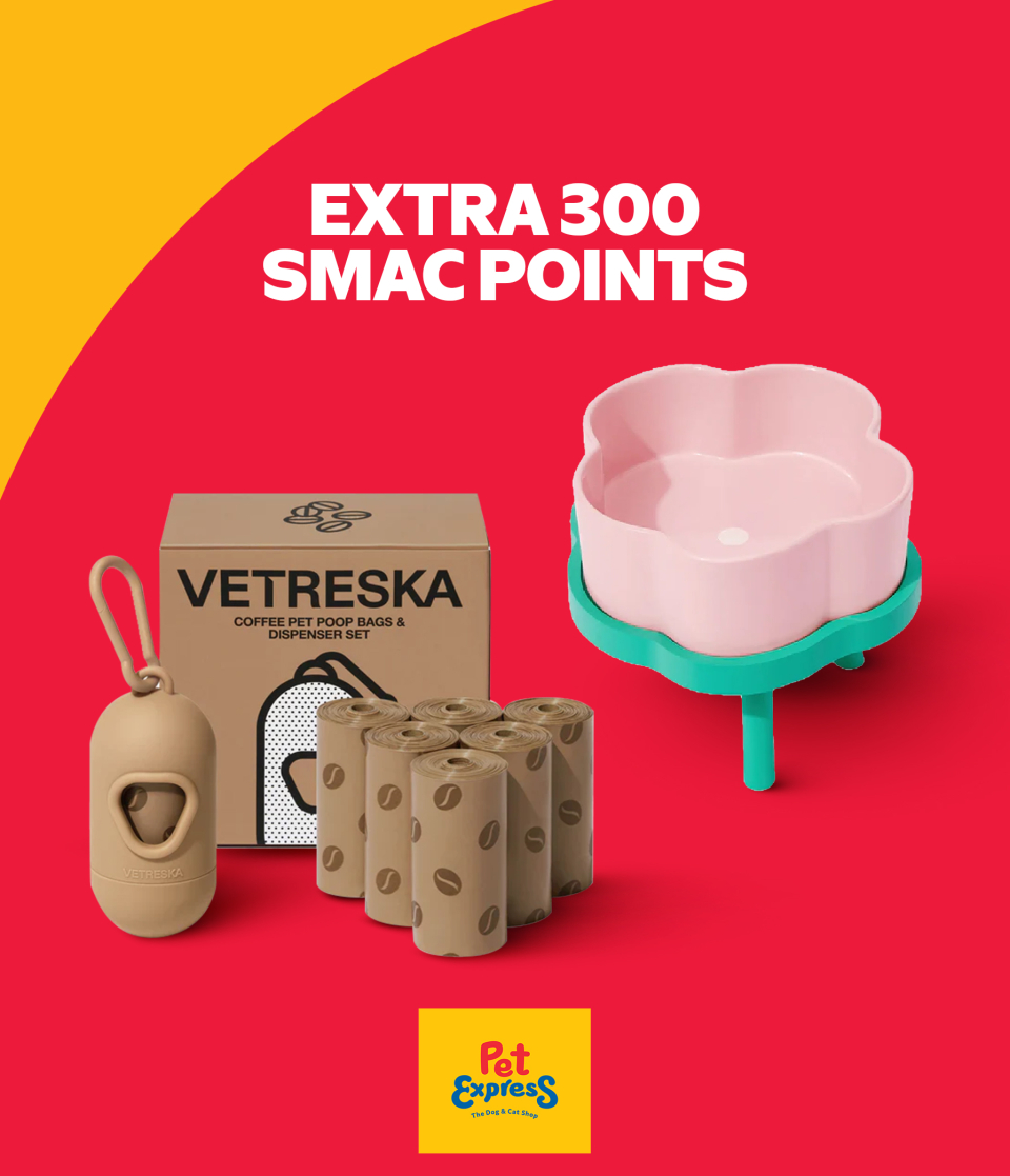 Earn EXTRA 300 SMAC Points with a minimum P3,000 single-receipt spend on select items at Pet Express.