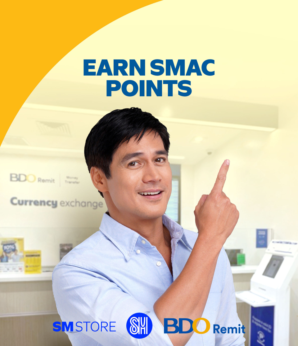 Earn 1 SMAC Point for every P10,000 cash pickup transaction with BDO Remit at the Currency Exchange counter inside SM Store.