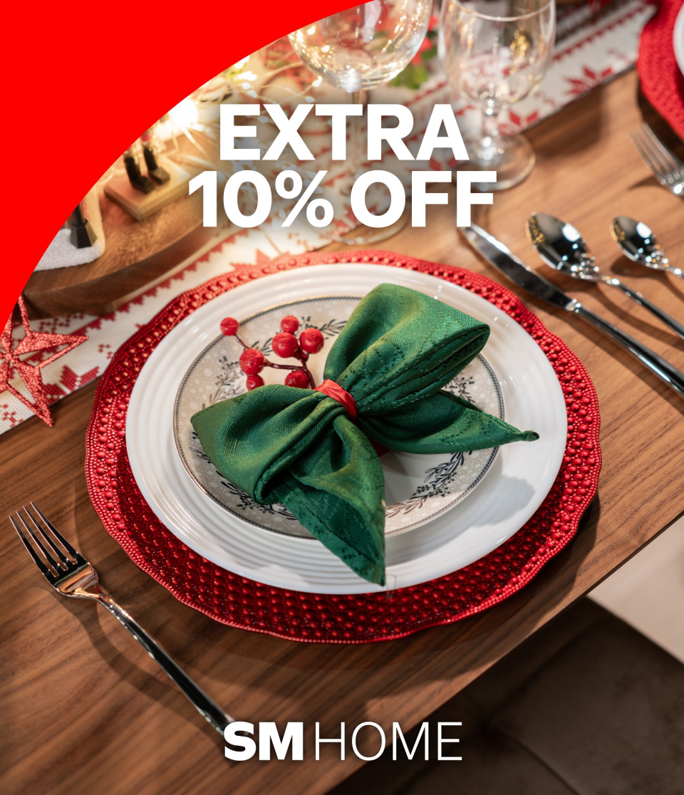 Get EXTRA 10% OFF with no minimum spend on all items at SM Home inside SM Store.