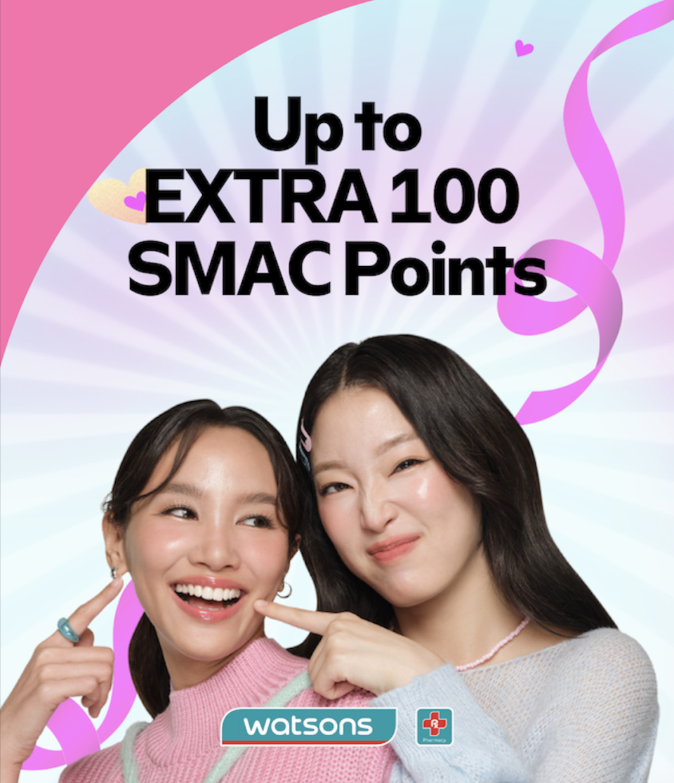 Earn up to EXTRA 100 SMAC Points when you shop health and beauty items at Watsons inside SM Hypermarket.